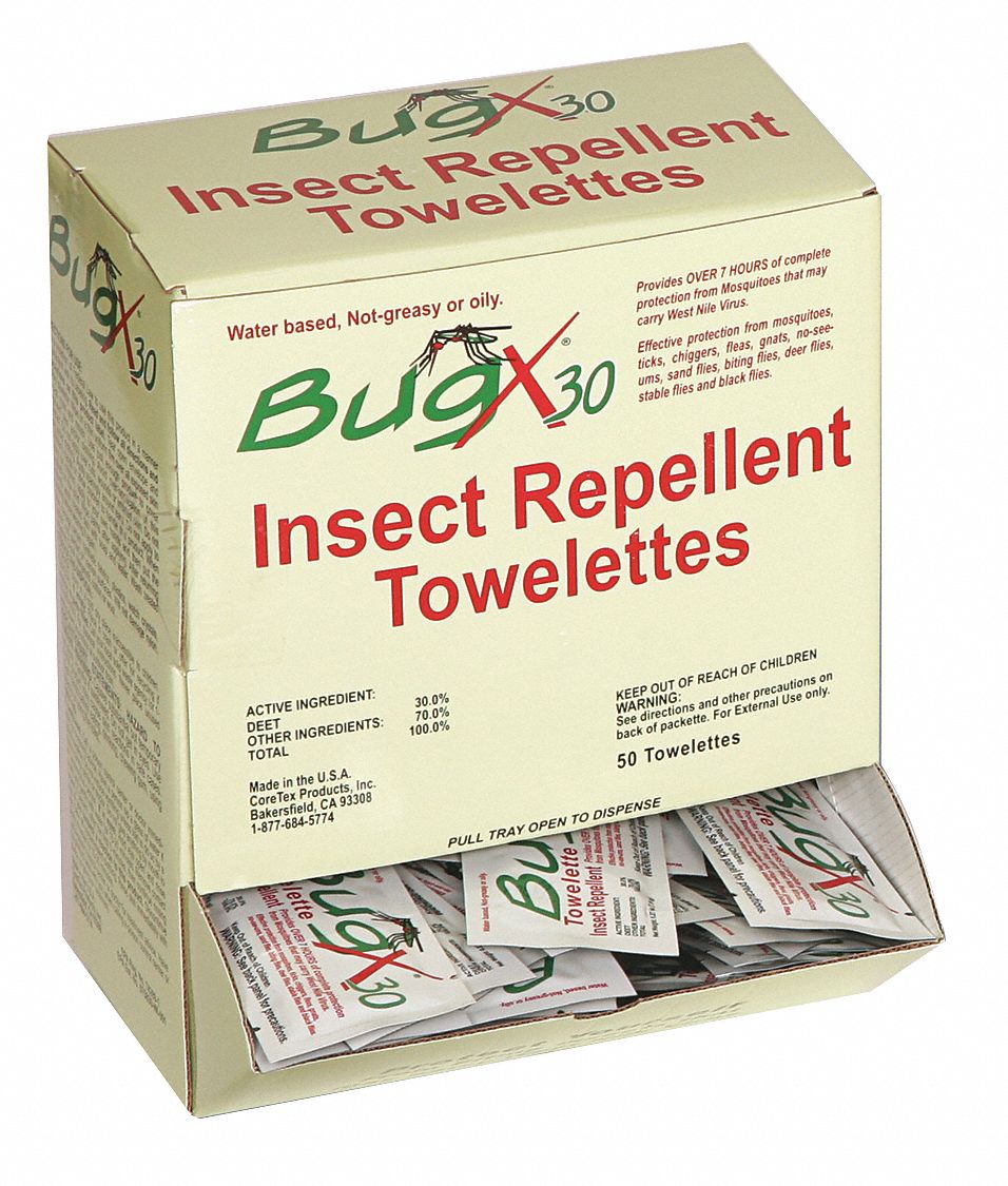 BUGX Insect Repellent, Wipes, 8 in x 5 in, Outdoor Only, 30.00 DEET